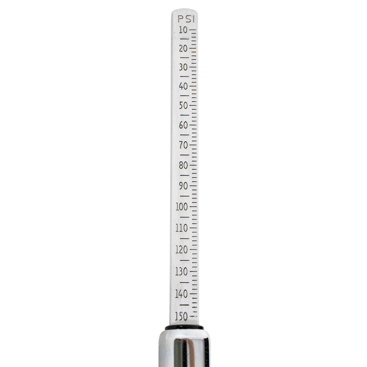 Este medidor cuenta con una barra indicadora de aluminio. Ofrece un rango de 10 a 150 PSI.